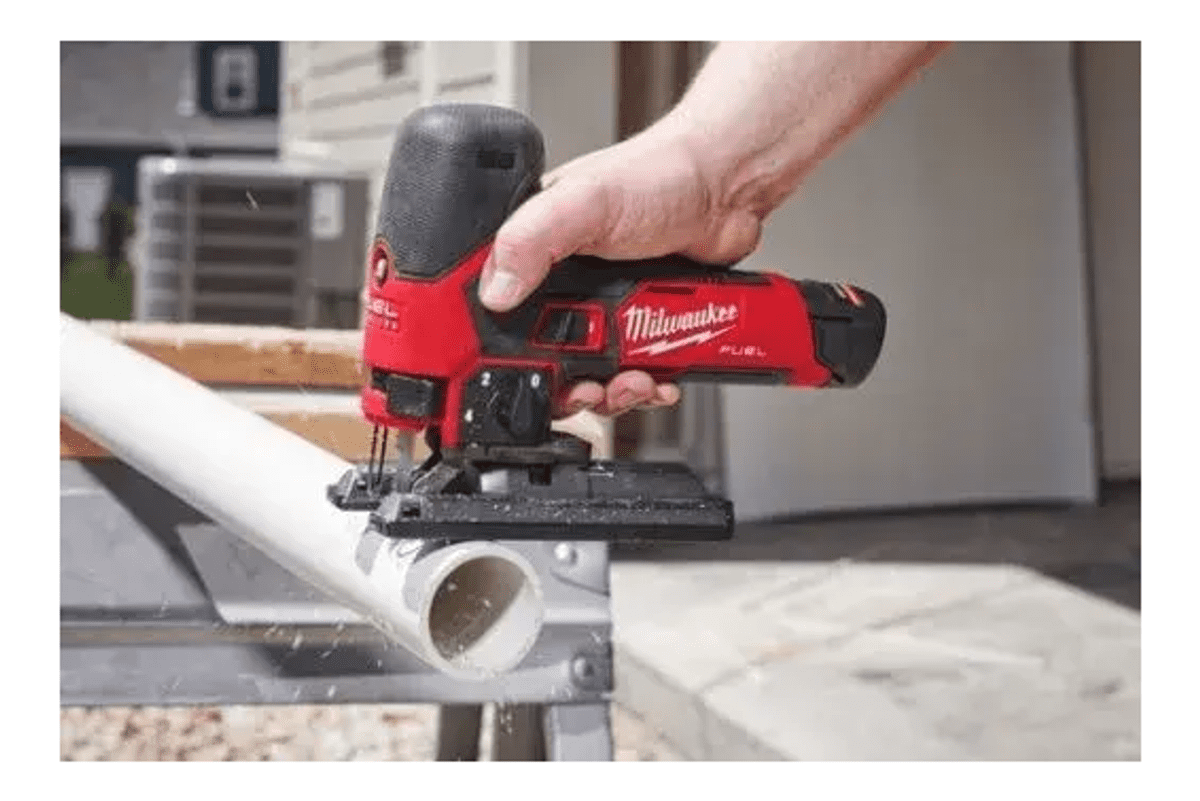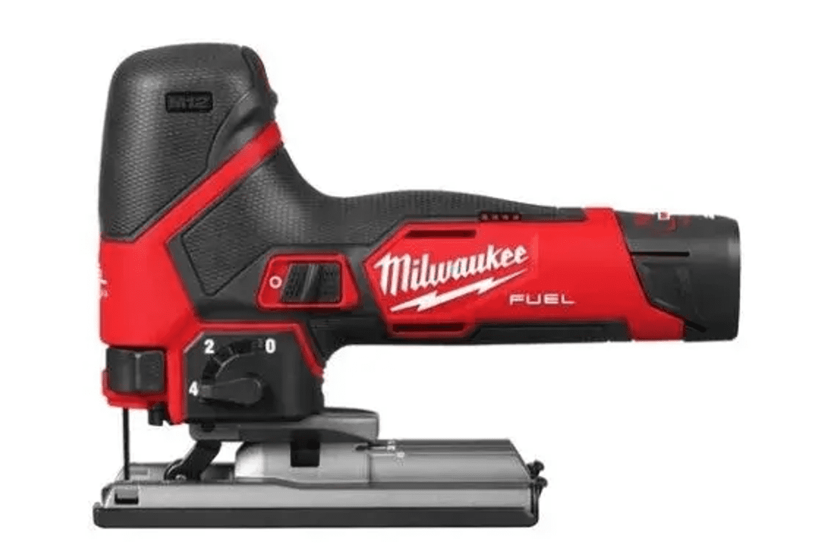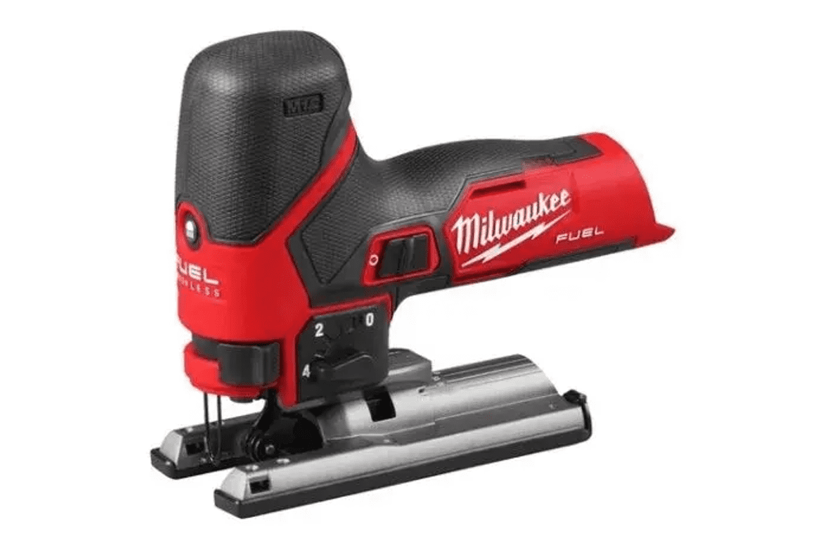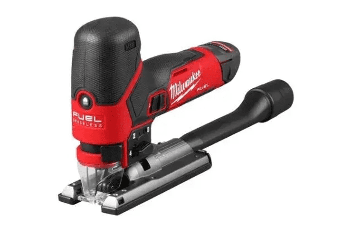• 12V vbodna žaga Milwaukee M12 FJS Fuel zagotavlja izjemno moč in vzdržljivost s časom žaganja do 24 m v 19 mm OSB ploščah (z baterijskim paketom 4,0 Ah).